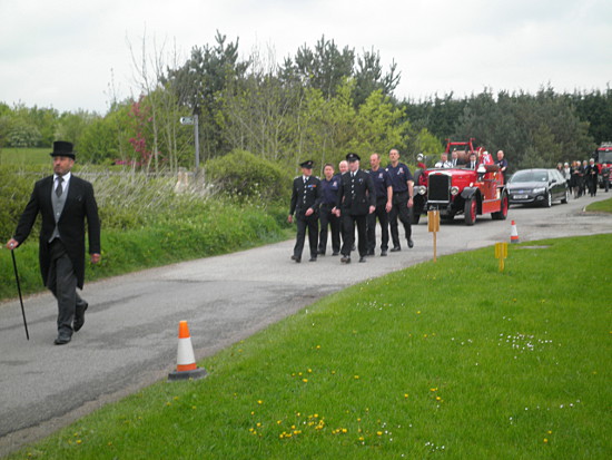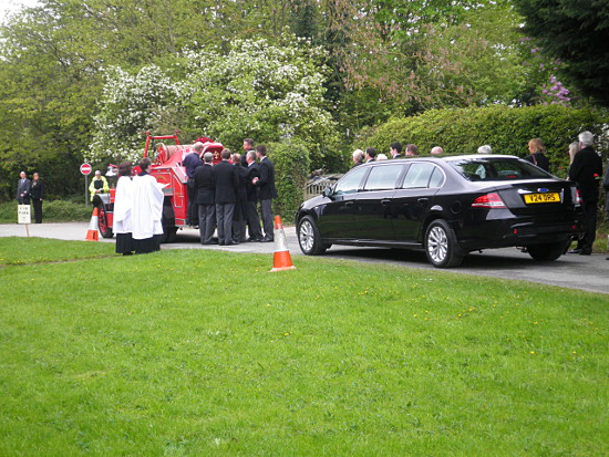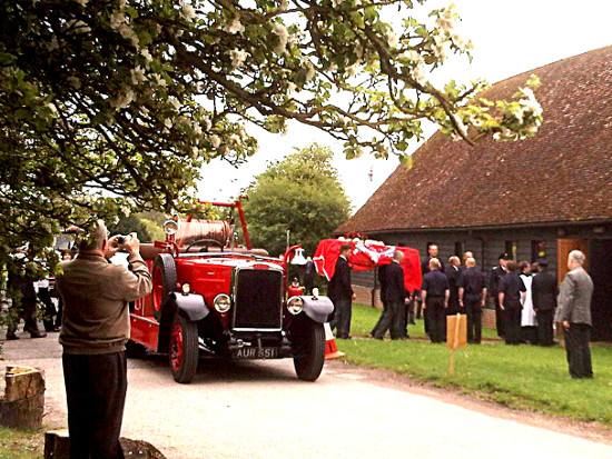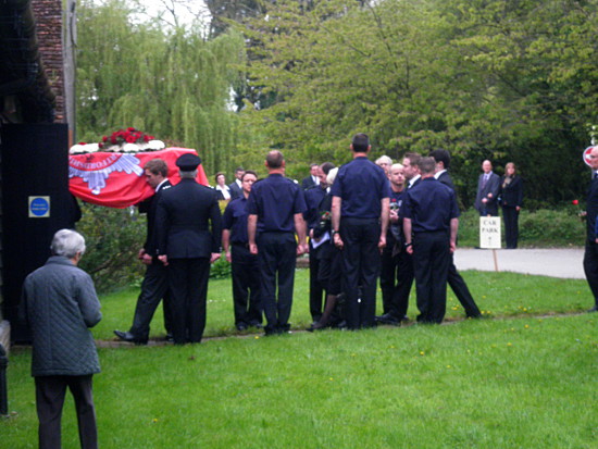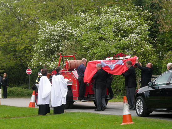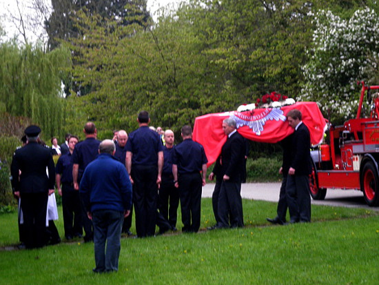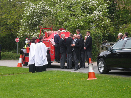 Firefighters formed the Guard-of-Honour at his funeral that was conducted by the Revds Anthea Platt and Rob Wynford-Harris on 22 April 2014 in a packed St Barnabas Centre at St James the Great, to which Albert was carried aboard Firefly, the now vintage fire engine that he drove for many years.